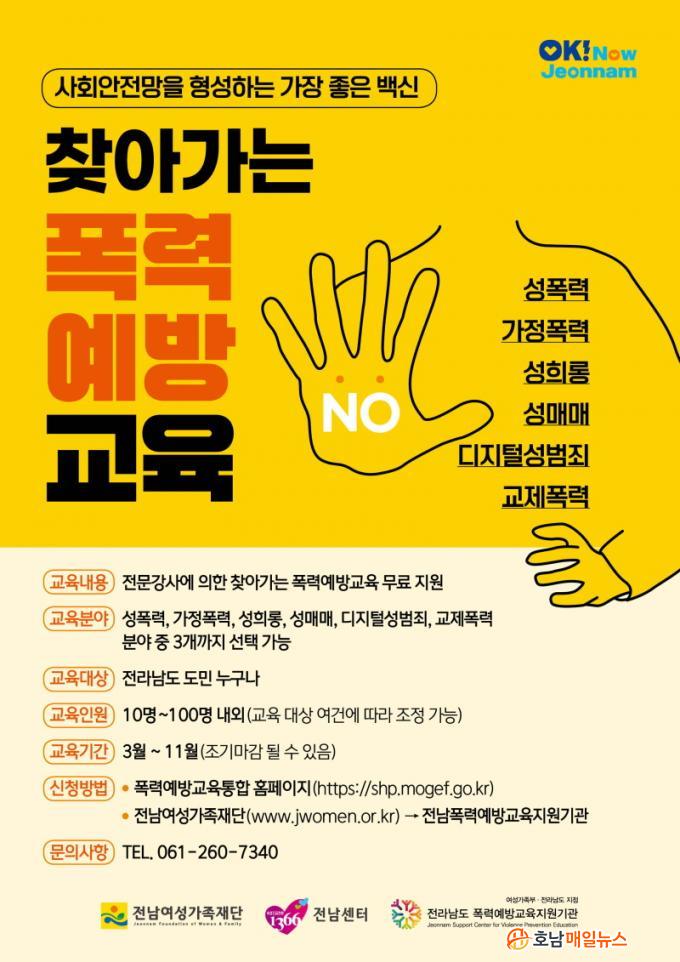 Àü³²¿©¼º°¡Á·Àç´ÜÀº Áö³ 2015³âºÎÅÍ Àü³²Æø·Â¿¹¹æ±³À°Áö¿ø±â°üÀ¸·Î ÁöÁ¤µÇ¾î ±³À°À» ¹ÞÀº µµ¹ÎÀÌ Æø·Â¿¡ ´ëÇÑ ¹Î°¨¼ºÀ» Çâ»ó½Ãų ¼ö ÀÖµµ·Ï ¹«·á·Î ±³À°À» Áö¿øÇؿԴÙ.