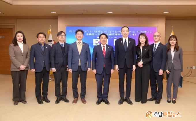 °±âÁ¤ ±¤ÁÖ±¤¿ª½ÃÀåÀº 21ÀÏ ½Ãû ºñÁî´Ï½º·ë¿¡¼ ±¤ÁÖ¸¦ ¹æ¹®ÇÑ ¹ÌÁî½Ã¸¶ °íÀÌÄ¡ ÁÖÇÑÀϺ»´ë»ç¿Í ¸¸³ª ¾ç±¹ÀÇ °æÁ¦‧»ê¾÷‧¹®È ±³·ùÇù·Â Ȱ¼ºÈ ¹æ¾È¿¡ ´ëÇØ ³íÀÇÇß´Ù.
