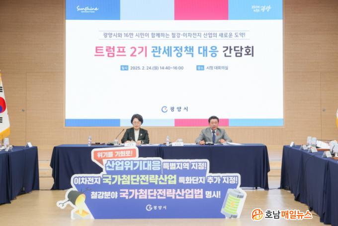 Á¤ÀÎÈ ±¤¾ç½ÃÀåÀº 24ÀÏ ½Ãû ´ëȸÀǽǿ¡¼ ¿¸° ¡®Æ®·³ÇÁ 2±â °ü¼¼Á¤Ã¥ ´ëÀÀ °£´ãȸ¡¯¸¦ ÁÖÀçÇß´Ù. À̹ø °£´ãȸ´Â ¹Ì±¹ÀÇ º¸È£¹«¿ªÁÖÀÇ ½ÉÈ·Î ¿¹»óµÇ´Â °ü¼¼ À庮¿¡ ´ëÀÀÇϱâ À§ÇÑ ÀÚ¸®·Î, ±â¾÷ ¾Ö·Î»çÇ×À» ûÃëÇÏ°í ´ëÀÀ Àü·«À» ³íÀÇÇÏ´Â µî °ü¼¼Á¤Ã¥ º¯È¿¡ µû¸¥ Áö¿ª °æÁ¦ Ÿ°ÝÀ» ÃÖ¼ÒÈÇÏ´Â ¹æ¾ÈÀ» ¸ð»öÇÏ´Â µ¥ ÃÊÁ¡À» ¸ÂÃè´Ù.