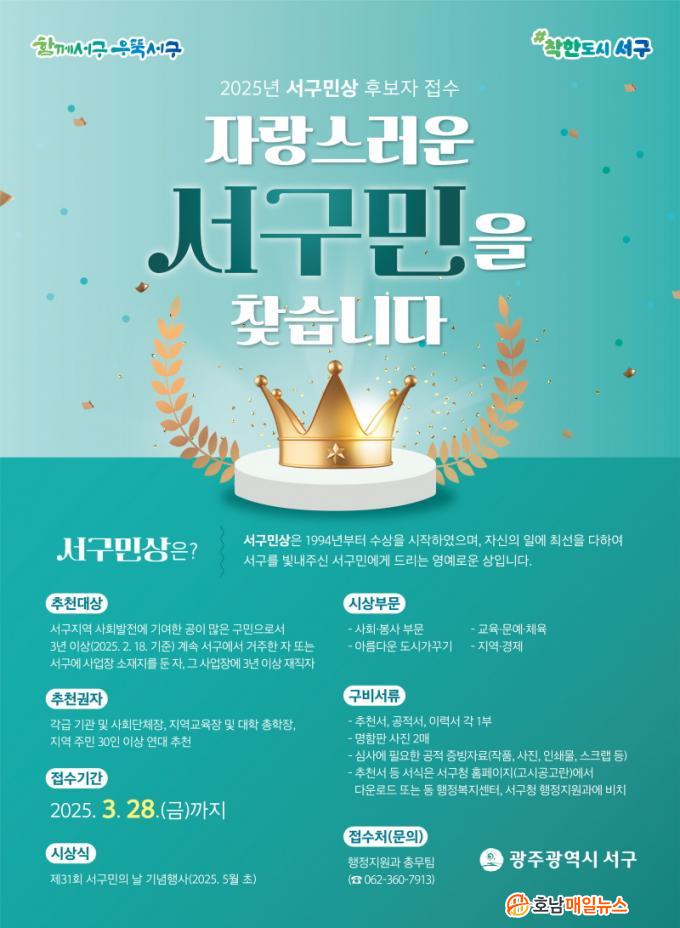 ¼±¸¹Î»ó Èĺ¸ÀÚ´Â °ø°íÀÏ(2¿ù 18ÀÏ) ±âÁØ 3³â ÀÌ»ó ¼±¸¿¡ °ÅÁÖ ÁßÀÎ ÁÖ¹ÎÀ¸·Î µ¿ÀÏÇÑ °øÀûÀ¸·Î »óÀ» ¹ÞÀº °æ·ÂÀÌ ¾ø¾î¾ß ÇÑ´Ù. Èĺ¸ÀÚ Ãßõ ±âÇÑÀº 3¿ù 28ÀϱîÁö¸ç ¼±¸Ã» ÇàÁ¤Áö¿ø°ú(062-360-7913)¿¡ °ü·Ã ¼·ù¸¦ Á¢¼öÇÏ¸é µÈ´Ù.