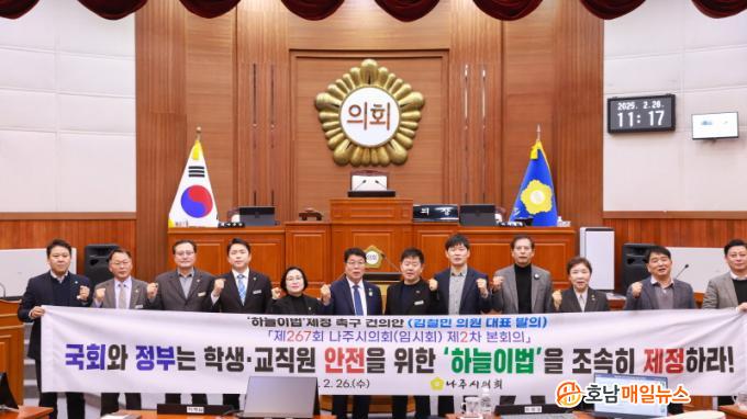 ÀÌ¿¡ µû¶ó ³ªÁÖ½ÃÀÇȸ´Â ¡¸ÇÏ´ÃÀ̹ý¡¹ÀÌ ±³À° ȯ°æ °³¼±À» À§ÇÑ ÃÖ¼ÒÇÑÀÇ ¾ÈÀü¸ÁÀÌ µÉ °ÍÀ̶ó¸ç Á¶¼ÓÇÑ ÀÔ¹ýÀ» °·ÂÈ÷ ¿ä±¸Çß´Ù. °ÇÀǾÈÀ» ´ëÇ¥ ¹ßÀÇÇÑ ±èö¹Î ÀÇ¿øÀº ¡¸ÇÏ´ÃÀ̹ý¡¹ Á¦Á¤ÀÇ ÁÖ¿ä Çʿ伺À¸·Î ´ÙÀ½ ¼¼ °¡Áö¸¦ °Á¶Çß´Ù.