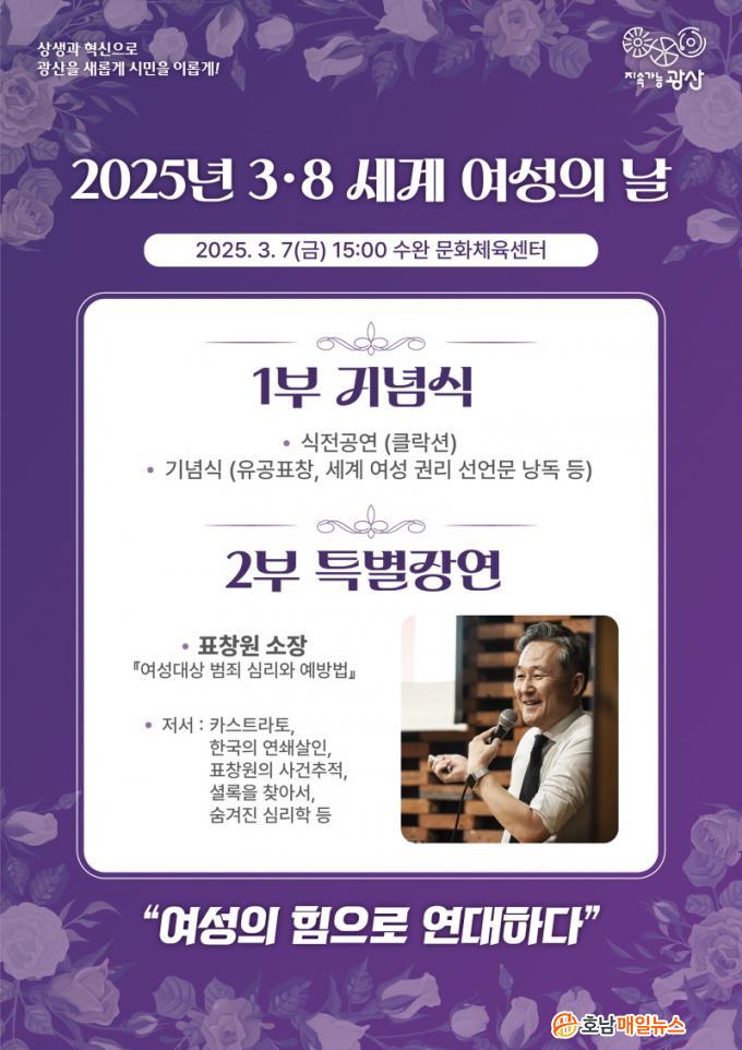 ±¤»ê±¸´Â 7ÀÏ ¿ÀÈÄ 3½Ã ¼ö¿Ï¹®ÈüÀ°¼¾ÅÍ¿¡¼ ¡®¿©¼ºÀÇ ÈûÀ¸·Î ¿¬´ëÇÏ´Ù¡¯¶ó´Â ±¸È£·Î 3‧8 ¼¼°è ¿©¼ºÀÇ ³¯ ±â³äÇà»ç¸¦ °³ÃÖÇÑ´Ù°í ¹àÇû´Ù.