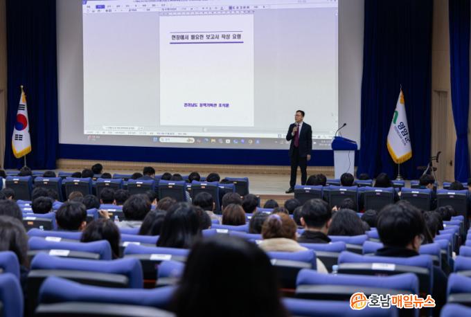 Á¶¼®ÈÆ Àü¶ó³²µµ Á¤Ã¥±âȹ°üÀÌ, 2/26ÀÏ ¿µ¾Ï±ºÃ»¿¡¼ ¿¸° ¡®°øÁ÷ÀÚ Á÷¹« Àü¹®±³À°¡¯ ù ¹øÂ° °Á ¡®Á¤Ã¥±âȹ·Â Çâ»ó¡¯¿¡¼ ±âº»±â¸¦ °Á¶Çß´Ù. °øÁ÷ÀÚµéÀÌ Á¤Ã¥À» È¿°úÀûÀ¸·Î ¼ö¸³¡¤½ÃÇàÇÏ·Á¸é ±âȹº¸°í¼ ÀÛ¼ºÀÌ Áß¿äÇÏ´Ù°í ÀüÇÑ °Í.