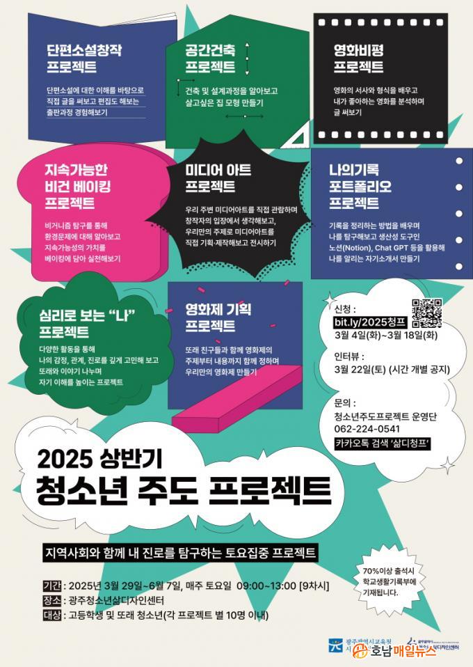 ¡®Ã»¼Ò³â ÁÖµµ ÇÁ·ÎÁ§Æ®¡¯´Â ½Ã¹ÎÇùÄ¡ÁøÈï¿ø°ú ±¤ÁÖû¼Ò³â »î µðÀÚÀμ¾ÅͰ¡ Çù·ÂÇØ ¿î¿µÇϰí ÀÖ´Â ÇÁ·Î±×·¥À¸·Î, û¼Ò³âµéÀÌ °ü½É ÀÖ´Â ÇÁ·ÎÁ§Æ®¸¦ ¼±ÅÃÇϰí Àü¹®°¡ÀÇ µµ¿òÀ» ¹Þ¾Æ ÁÖµµÀûÀ¸·Î °á°ú¹°À» µµÃâÇÏ´Â ¹æ½ÄÀ¸·Î ¿î¿µµÈ´Ù. Âü¿© ´ë»óÀº °íµîÇлý ¹× Çб³¹Ûû¼Ò³â µî ¶Ç·¡ û¼Ò³âÀÌ´Ù.