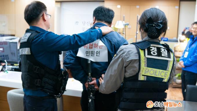 ƯÈ÷, ¹Î¿øÀÎÀÇ Æø¾ðÀÌ ¹ß»ýÇÑ ÀÌÈÄ »ó±ÞÀÚÀÇ Àû±Ø °³ÀÔ ¹× ÁøÁ¤ À¯µµ, »çÀü °íÁö ÈÄ ³ìÀ½ ½Ç½Ã, ºñ»óº§ È£Ãâ ¹× °æÂû Ã⵿, ÇÇÇØ °ø¹«¿ø º¸È£ ¹× ¹æ¹® ¹Î¿øÀÎ ´ëÇÇ, °æÂûÀÇ ¾Ç¼º ¹Î¿øÀÎ Á¦¾Ð ¹× Åð°Å Á¶Ä¡ µî ¼ø¼´ë·Î ´ëÀÀÇϵµ·Ï ÈÆ·ÃÇß´Ù.