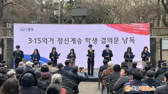 À̳¯ ±â³ä½ÄÀº 3‧15±â·Ï¿µ»ó »ó¿µ, ±¤ÁÖ3‧15¼±¾ð¹® ³¶µ¶, ±¤ÁÖ3‧15 Á¤½Å°è½Â Çлý °áÀǹ® ³¶µ¶, À¯°øÀÚ Ç¥Ã¢, ±â³ä»ç µîÀÇ ¼øÀ¸·Î ÁøÇàµÆ´Ù. ƯÈ÷ ±¤ÁÖÁö¿ª °íµîÇлýÀ» ´ëÇ¥ÇÏ´Â ¡®°íµîÇб³ ÇлýÀÇȸ ÀÇÀå´Ü¡¯ÀÌ ±¤ÁÖ3‧15ÀǰŠÁ¤½Å°è½ÂÀ» À§ÇÑ °áÀǹ®À» ³¶µ¶ÇØ Àǹ̸¦ ´õÇß´Ù.