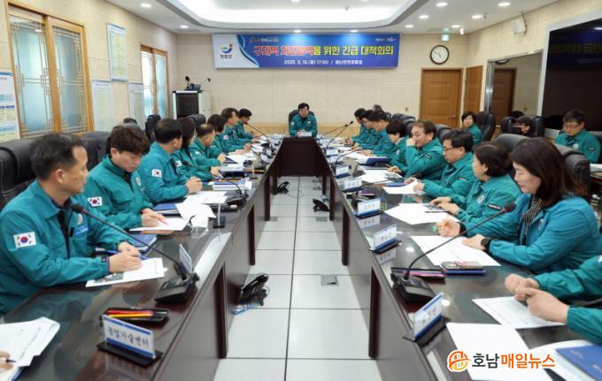 16ÀÏ ¿¸° ±¸Á¦¿ª ±ä±Þ ´ëåȸÀÇ¿¡¼´Â °¢ ºÐ¾ßº°·Î ±¸Á¦¿ªÀ» ¿¹¹æÇÒ ¼ö ÀÖ´Â ¸ðµç ¼ö´ÜÀ» ¸ð»öÇϰí, ³óÀå´ÜÀ§ Â÷´Ü¹æ¿ªÀ» À§ÇØ ¼Òµ¶¾àǰ 4ÅæÀ» ±ä±Þ °ø±ÞÇÏ´Â µî ¹æ¿ª¿¡ ÃÑ·ÂÀ» ±â¿ïÀ̱â·Î Çß´Ù.