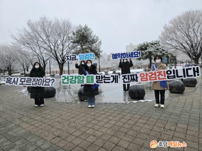 Çö¼ö¸· µîÀ» ÅëÇØ Á¤±âÀûÀÎ ¾Ï °ËÁøÀ» ÅëÇÑ Á¶±âÁø´ÜÀÇ Çʿ伺À» È«º¸Çß´Ù. 20¼¼ ÀÌ»ó ¿©¼ºÀº ÀڱðæºÎ¾Ï, 40¼¼ ÀÌ»óÀº À§¾Ï‧°£¾Ï‧À¯¹æ¾Ï, 50¼¼ ÀÌ»óÀº ´ëÀå¾Ï °ËÁøÀ» ¹ÞÀ» °ÍÀ» ¾È³»Çß´Ù.