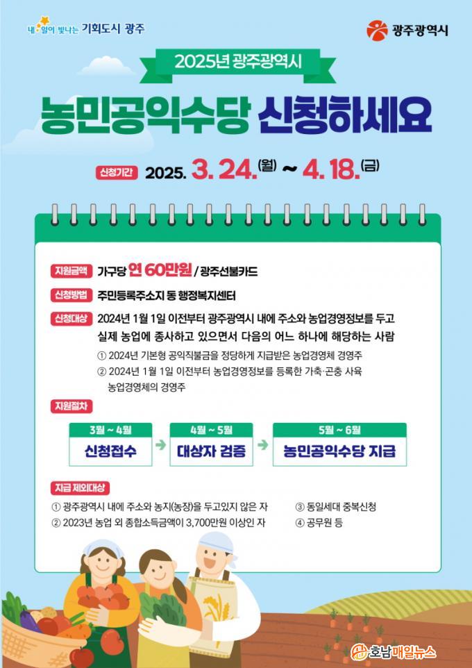 ¡®±¤ÁÖ ³ó¹Î°øÀͼö´ç¡¯Àº ¹Î¼± 8±â ÇÙ½É °ø¾àÀÎ ¡®3´ë °øÀͰ¡Ä¡ ¼ö´ç¡¯ Áß Çϳª·Î, Áö³ 2023³â ±¤¿ª½Ã ÃÖÃÊ·Î µµÀԵƴÙ. ±¤Áֽô 2023³â 7100³ó°¡¿¡ 42¾ï6000¸¸¿ø, 2024³â 8356³ó°¡¿¡ 50¾ï1400¸¸¿øÀÇ ³ó¹Î°øÀͼö´çÀ» Áö¿øÇß´Ù.