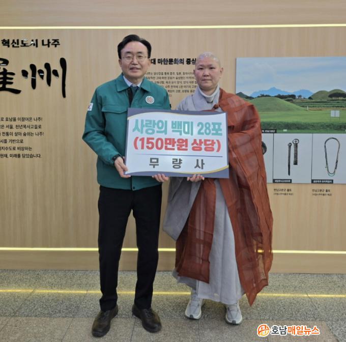 À±º´Å ³ªÁÖ½ÃÀåÀº ¡°¾î·Á¿î ÀÌ¿ôÀ» À§ÇØ ³ª´®À» ½ÇÃµÇØ Áֽй«·®»ç¿Í ½Åµµµé²² °¨»çµå¸°´Ù¡±¸ç ¡°±âÅ¹ÇØ Áֽйé¹Ì¸¦ ²À ÇÊ¿äÇÑ ÀÌ¿ôµé¿¡°Ô ¼ÒÁßÈ÷ Àü´ÞÇϰڴ١±°í ¹àÇû´Ù.