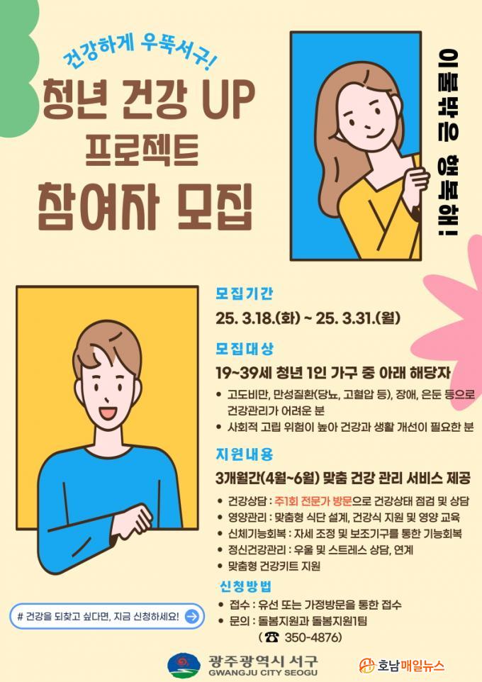À̹ø ÇÁ·ÎÁ§Æ®´Â 19~39¼¼ û³â 1ÀÎ °¡±¸ Áß °Ç°°ü¸®°¡ ÇÊ¿äÇÑ 20¸íÀ» ¼±¹ßÇØ 3°³¿ù°£ ÁýÁß Áö¿øÇÏ´Â ¹æ½ÄÀ¸·Î ¿î¿µµÇ¸ç °£È£»ç¿Í ¿µ¾ç»ç, ÀÛ¾÷Ä¡·á»ç µî °Ç°°ü¸® Àü¹®°¡µéÀÌ °¡Á¤À» ¹æ¹®ÇØ ¡ã°Ç°»ó´ã ¡ã¸ÂÃãÇü ½Ä´Ü ¼³°è ¹× °Ç°½Ä Áö¿ø ¡ã½Åü ±â´É ȸº¹ ÈÆ·Ã µî °³ÀÎ ¸ÂÃãÇü ÇÁ·Î±×·¥À» Á¦°øÇÒ ¿¹Á¤ÀÌ´Ù.