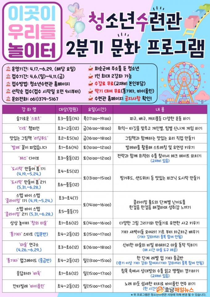 ȼø±º¿¡ ÁÖ¼Ò¸¦ µÐ û¼Ò³âÀº ´©±¸³ª Âü¿©ÇÒ ¼ö ÀÖÀ¸¸ç, 4¿ù 6ÀÏ(ÀÏ)~11ÀÏ(±Ý)±îÁö ȼø±ºÃ»¼Ò³â¼ö·Ã°ü ´©¸®Áý(https://hwasunyouth.kr/) ÇÁ·Î±×·¥ ½Åû °Ô½ÃÆÇÀ» ÅëÇØ Á¢¼öÇÏ¸é µÈ´Ù. Á¢¼ö ½ÃÀÛÀÏ ¿ÀÀü 9½ÃºÎÅÍ ¼±Âø¼øÀ¸·Î ¸ðÁýÇϰí, È®Á¤µÈ ´ë»óÀÚ¿¡°Ô´Â ¹®ÀÚ·Î °³º° ¾È³»ÇÑ´Ù.