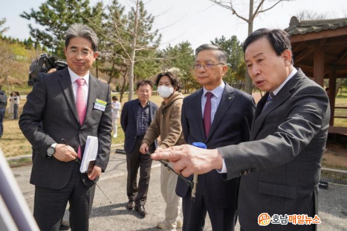 À̳¯ ¸ñÆ÷¸¦ ¹æ¹®ÇÑ ÀÌÇÑÁØ Çѱ¹ÅäÁöÁÖÅðø»ç »çÀåÀº ¹ÚÈ«·ü ¸ñÆ÷½ÃÀå°ú ÇÔ²² ÀÓ¼ºÁö±¸ »ç¾÷ ÇöÀåÀ» µÑ·¯º¸¸ç °³¹ß ÁøÇà »óȲÀ» È®ÀÎÇϰí ÇâÈÄ ÃßÁø¿¡ ´ëÇÑ ·Îµå¸ÊÀ» °øÀ¯Çß´Ù.