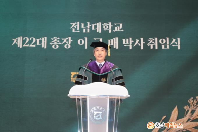 À̱ٹè ÃÑÀåÀº ÃëÀӻ翡¼ ¡°Áö³ 26³â°£ ±³¼ö·Î ¸ö´ã¾Æ¿Â ¸ð±³¿¡¼ ÃÑÀåÀ¸·Î¼ ¸¶Áö¸· ºÀ»çÀÇ ±âȸ¸¦ ¾ò°Ô µÈ °ÍÀ» ±â»Ú°í °¨»çÇÏ°Ô »ý°¢ÇÑ´Ù¡±¸ç, ¡°1952³â âÇÐÀ̳äÀ» µÇ»õ±â¸ç ÃʽÉÀ¸·Î µ¹¾Æ°¡ Àü³²´ëÇб³¸¦ ´õ¿í ±»°ÇÈ÷ ¼¼¿ì°Ú´Ù¡±°í ¹àÇû´Ù. ¶ÇÇÑ, ¡®¼ÒÅ롯°ú ¡®Áö¿ª »ó»ý¡¯À» °Á¶ÇÏ¸ç ¡°Áö¿ª ¼ºÀåÀ» °ßÀÎÇÏ´Â °ÅÁ¡ ±âÁö ¿ªÇÒÀ» ¼öÇàÇÔ°ú µ¿½Ã¿¡ ½Ã´ë°¡ ¿ä±¸ÇÏ´Â ±Û·ÎÄà ¸í¹®´ëÇÐÀ¸·Î Àü³²´ë¸¦ µµ¾à½ÃŰ°Ú´Ù¡±´Â ÀÇÁö¸¦ ´ÙÁ³´Ù.