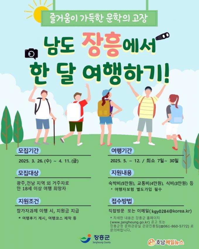¡®ÀåÈï¿¡¼ ÇÑ ´Þ ¿©ÇàÇϱ⡯»ç¾÷Àº Àå±â ü·ù ¿©ÇàÀÚ¿¡°Ô ¿©Çà°æºñ¸¦ Áö¿øÇÏ°í ¿©ÇàÀÚ´Â °³ÀÎ SNS µîÀ» ÅëÇØ ÀåÈï ¿©ÇàÀ» È«º¸ÇÏ´Â »ç¾÷ÀÌ´Ù. °ø°íÀÏ ±âÁØ ±¤ÁÖ¡¤Àü³² ¿Ü ÁÖ¼ÒÁö¸¦ µÐ °ü±¤°´ Áß ÀåÈï ¿©ÇàÀ» Èñ¸ÁÇÏ´Â ´©±¸³ª ½Åû °¡´ÉÇÏ´Ù.