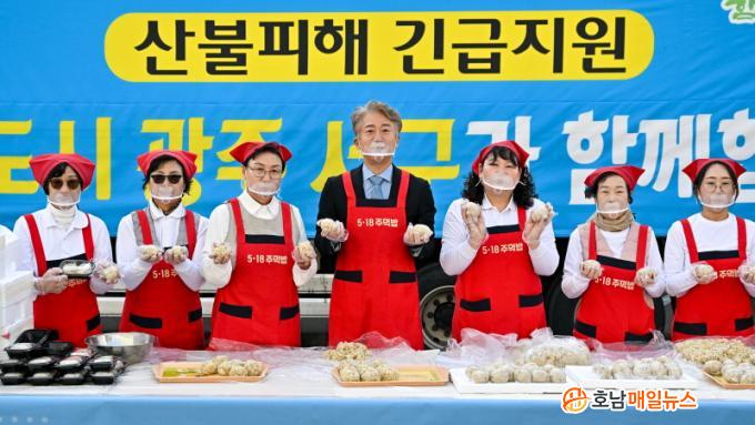 ¼±¸´Â À̳¯ ¿ÀÀü »ý¼ö¿Í ÄŶó¸é, »ýÇÊǰ µî ±ä±Þ ±¸È£¹°Ç°À» 5.7Åæ Æ®·°¿¡ ½Ç¾î ¿µ´öÀ¸·Î Ãâ¹ßÇß´Ù. ¹°¸¶·ç, ¿ÍÀ̸¶Æ®, ½Å¼¼°èÀ̸¶Æ®, ´Ù¸£´Ù±è¹ä µî Áö¿ª ¾÷üµéÀÌ ÀÚ¹ßÀûÀ¸·Î ±¸È£¹°Ç°À» ±âºÎÇß´Ù. ¶ÇÇÑ ±èÀ̰ ¼±¸Ã»Àå°ú ¾çµ¿ÀüÅë½ÃÀå »óÀεé·Î ±¸¼ºµÈ ¡®¾çµ¿ Àå±ÝÀÌ¡¯´Â À̳¯ ¾ÆÄ§ ³ª´®°ú ¿¬´ëÀÇ »ó¡ÀÎ ¡®5‧18ÁָԹ䡯À» 500ÀκР¸¸µé¾î ÇöÁö¿¡ º¸³Â´Ù.