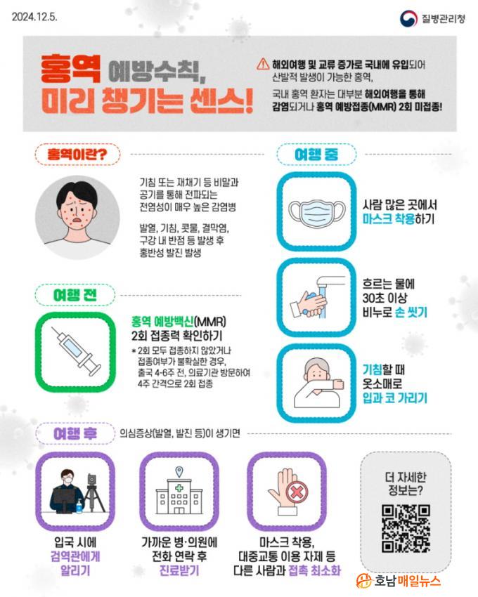È«¿ª ¹é½ÅÀº(MMR) »ýÈÄ 12~15°³¿ù ¹× 4~6¼¼¿¡ ÃÑ 2ȸ¿¡ °ÉÃÄ Á¢Á¾ÇÑ´Ù. ƯÈ÷, È«¿ª À¯Çà±¹°¡ ¹æ¹® ¿¹Á¤ÀÚ, ÀÌÁÖ ³ëµ¿ÀÚ, ´Ù¹®È °¡Á¤ ¹× ¿Ü±¹ÀÎ À¯Çлý Áß Á¢Á¾ÇÏÁö ¾ÊÀº »ç¶÷Àº ¹Ýµå½Ã Á¢Á¾ÇØ¾ß ÇÑ´Ù. ¶ÇÇÑ, 1¼¼ ¹Ì¸¸ÀÇ ¿µÀ¯¾Æ(»ýÈÄ 6°³¿ù~11°³¿ù)°¡ È«¿ª À¯Çà±¹°¡ ¹æ¹® ½Ã °¡¼Ó Á¢Á¾ÀÌ °¡´ÉÇϹǷΠÃÖ¼Ò Ãâ±¹ 2ÁÖ Àü¿¡ Á¢Á¾Çϵµ·Ï ÇØ¾ß ÇÑ´Ù.