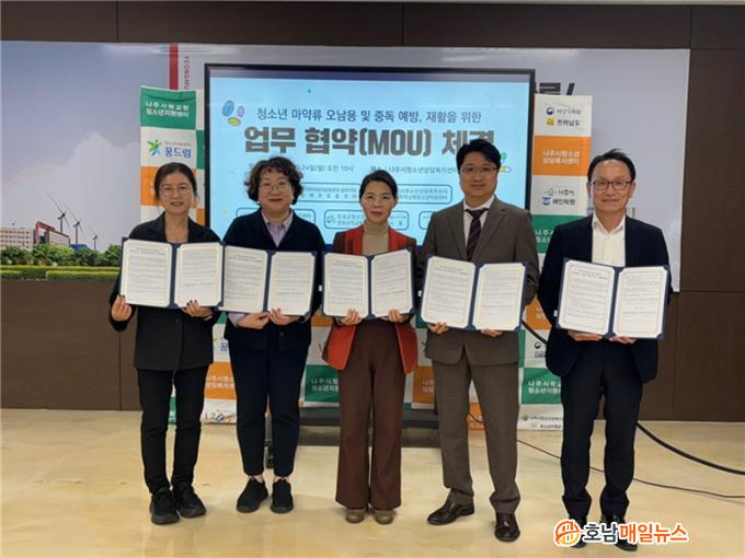ÀÓÇö¼± ³ªÁÖ½Ãû¼Ò³â»ó´ãº¹Áö¼¾ÅÍ¡¤³ªÁÖ½ÃÇб³¹Ûû¼Ò³âÁö¿ø¼¾ÅÍÀåÀº "À̹ø Çù¾àÀ» ÅëÇØ û¼Ò³â ¸¶¾à ¹× À¯Çؾ๰ Áßµ¶ ¹®Á¦°¡ Áö¼ÓÀûÀ¸·Î Áõ°¡Çϰí ÀÖ´Â »óȲ¿¡¼ Çѱ¹¸¶¾àÅðÄ¡¿îµ¿º»ºÎ ±¤ÁÖÁöºÎ¿Í ¾÷¹«Çù¾àÀ» ¸ÎÀ½À¸·Î½á û¼Ò³âÀ» À§ÇÑ Áö¿øÃ¼°è¸¦ °ÈÇÒ ¼ö ÀÖ´Â °è±â°¡ ¸¶·ÃµÆ´Ù"¸ç, "¾ÕÀ¸·Îµµ Áö¼ÓÀûÀÎ ¼ÒÅë°ú Çù·Â ³×Æ®¿öÅ©¸¦ ÅëÇØ û¼Ò³âµéÀÌ °Ç°ÇÏ°Ô ¼ºÀåÇÒ ¼ö Àִ ȯ°æÀ» ¸¸µé°Ú´Ù"°í ¹àÇû´Ù.