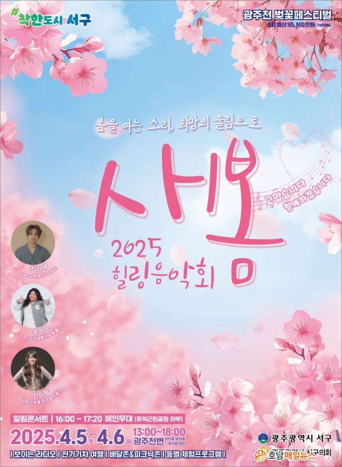 À̹ø Èú¸µÀ½¾Çȸ´Â¡®º½À» ¿©´Â ¼Ò¸®, Èñ¸ÁÀÇ ¿ï¸²À¸·Î¡¯¶ó´Â ÁÖÁ¦·Î ±¤ÁÖÀÇ ´ëÇ¥ º¢²É ¸í¼ÒÀÎ ±¤ÁÖõº¯¿¡¼ ½Ã¹Îµé¿¡°Ô À½¾Ç°ú ½°À» ÅëÇØ Èú¸µÀÇ ½Ã°£À» Á¦°øÇÒ ¿¹Á¤ÀÌ´Ù. ƯÈ÷ ¿ÃÇØ´Â °æ±â ħü Àå±âÈ·Î ¾î·Á¿î ½Ã±â¸¦ º¸³»°í ÀÖ´Â ¼Ò»ó°øÀÎÀ» À§·ÎÇÏ°í °Ý·ÁÇÏ´Â ÀÚ¸®·Î Àǹ̸¦ ´õÇß´Ù.