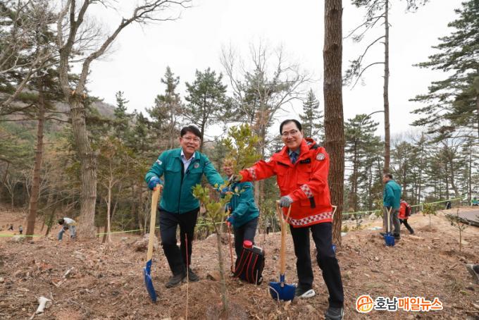 À̳¯ ±º¿Ü¸é »ïµÎ¸® Ãß¸ð °ø¿ø ³» 2ha ±Ô¸ðÀÇ »ê¸²¿¡ Áö¿ª ´ëÇ¥ ³´ë ¼öÁ¾ÀΠȲĥ³ª¹«¿Í ¿Ïµµ±º Áö¸íÀÌ ¸í¸íµÈ ¿ÏµµÈ£¶û°¡½Ã³ª¹« 1,500ÁÖ¸¦ ½ÄÀçÇß´Ù. ¾Æ¿ï·¯ »êºÒ ¿¹¹æ Ä·ÆäÀÎÀ» º´ÇàÇØ »êºÒ¿¡ ´ëÇÑ °æ°¢½ÉÀ» °íÃë½ÃÄ×´Ù.