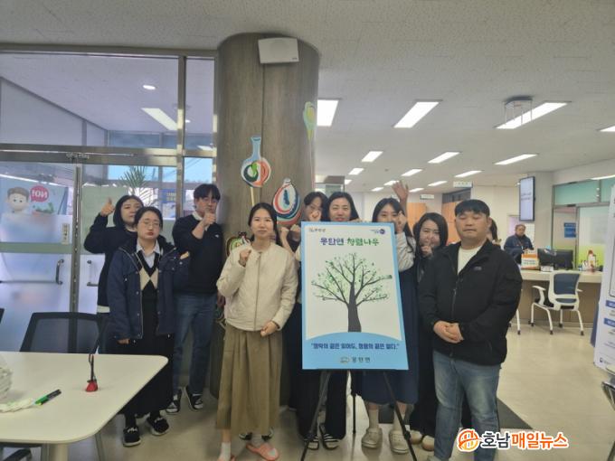 ¸ùź¸é»ç¹«¼Ò Àü Á÷¿ø 20¿©¸íÀº ´ëÇü ĵ¹ö½º¿¡ ±×·ÁÁø ³ª¹«¿¡ Á÷Á¢ ¼ÕµµÀåÀ¸·Î ¼ÒÅë ³ª¹«¸¦ ¿Ï¼ºÇÏ¿© û·Å ½ÇõÀÇ ¶æÀ» ¸ð¾Ò°í, À̾î û·Å ¹®±¸¸¦ ÇÔ²² ³¶µ¶ÇÏ¸ç ½Å·Ú¹Þ´Â °øÁ÷»çȸ Á¶¼ºÀ» À§ÇØ ¾ÕÀå¼°Ú°í ´ÙÁüÇß´Ù.
