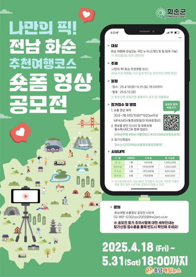 °ø¸ð ÁÖÁ¦´Â ¡®È¼øÀ¸·Î ¶°³ª°í ½Í¾îÁö´Â Ãßõ ¿©Çà ¿µ»ó¡¯À¸·Î À帣¿¡ °³ÀÇÄ¡ ¾Ê°í ȼøÀÇ ´Ù¾çÇÑ °ü±¤Áö¸¦ ¸Å·ÂÀûÀ¸·Î Ç¥ÇöÇÏ¸é µÈ´Ù. Âü°¡ÀÚ´Â Á¦ÀÛÇÑ ¿µ»óÀ» º»ÀÎÀÇ ÀνºÅ¸±×·¥ ¶Ç´Â À¯Æ©ºê °èÁ¤¿¡ Çʼö ÇØ½ÃÅÂ±×¿Í ÇÔ²² ¾÷·ÎµåÇÑ ÈÄ, Âü°¡ ½Åû¼¸¦ Á¦ÃâÇÏ¸é µÈ´Ù.