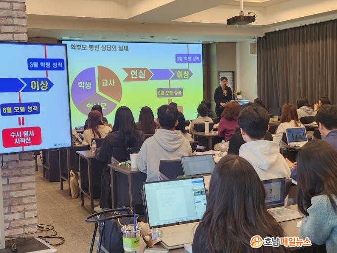 À̹ø ¿¬¼ö´Â °í±³ÇÐÁ¡Á¦ Àü¸é µµÀÔ°ú ´ëÀÔÁ¦µµ °³Æí¿¡ ´ëºñÇÏ¿© ÀϹݰí ÁøÇÐ °æÀï·ÂÀ» ³ôÀ̱â À§ÇØ ¸¶·ÃµÆ´Ù. ƯÈ÷ ¡®°øºÎÇÏ´Â Çб³¹®È¡¯ Á¶¼ºÀ» À§ÇØ Á÷À§¸¦ ¸··ÐÇÏ°í ±³»çµéÀÌ ÀÚ¹ßÀûÀ¸·Î Âü¿©ÇØ, ¹ã´Êµµ·Ï ÀԽø¦ ¿¬±¸Çϰí ÁøÇÐÁöµµ °ÝÂ÷ ÇØ¼Ò¸¦ À§ÇÑ ´Ù¾çÇÑ ¾ÆÀ̵ð¾î¸¦ °øÀ¯ÇÏ´Â ¶æ±íÀº ½Ã°£À» °¡Á³´Ù.
