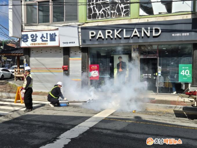 ¿µ¾ÏÀ¾ ½Ã°¡Áö 820m ±¸°£ ºø¹°¡¤Çϼö°üÀÇ ±òµû±¸ Á¦°Å¸¦ À§ÇØ ÈÞ´ë¿ë ¹æ¿ª¼Òµ¶±â, °í¾Ð ¼Ûdz±â¸¦ ¿¬°áÇØ °ü·Î ±íÀº °÷±îÁö ¼Òµ¶Á¦ÀÇ ºÐ»ç·®À» ±×´ëÈÇÏ´Â ¡®°¡¿ ¿¬¸· °ø°£ »ìÆ÷¡¯ ¹æ½ÄÀ¸·Î ¼Òµ¶Çϰí ÀÖ´Ù.