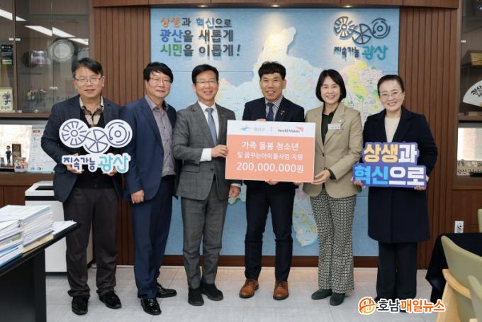 Áö³ 16ÀÏ ±¤»ê±¸Ã»¿¡¼ ¹Úº´±Ô ±¤»ê±¸Ã»Àå, »çȸº¹Áö¹ýÀÎ ¿ùµåºñÀü ±¤ÁÖÀü³²»ç¾÷º»ºÎ(º»ºÎÀå Á¤º´¿ø), ¼Û±¤(°üÀå ±èÀçÁø)‧÷´Ü(°üÀå ¹®Çʵ¿)‧Çູµå¸²(°üÀå ÀÌÇö¼÷) µî 3°³ ±¤»ê±¸ Á¾ÇÕ»çȸº¹Áö°ü, ¹Ú¹Ì¿Á ±¤»ê±¸ÀÇ¿ø µîÀÌ Âü¼®ÇÑ °¡¿îµ¥ °¡Á·µ¹º½Ã»¼Ò³â »ç¾÷ Áö¿ø±Ý 2¾ï ¿ø Àü´Þ½ÄÀÌ ¿·È´Ù.