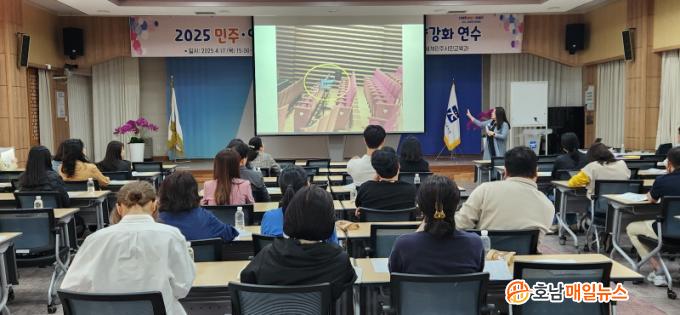 ÀÌÁ¤¼± ±³À°°¨Àº ¡°Çлý Áß½ÉÀÇ ¹ÎÁֽùα³À°ÀÌ È°¼ºÈµÇ±â À§Çؼ´Â ±³»çÀÇ Àü¹®¼º°ú ½Çõ ¿ª·®ÀÌ Áß¿äÇÏ´Ù¡±¸ç ¡°±³»çµéÀÌ ÇöÀå¿¡¼ Á÷Á¢ Àû¿ëÇÒ ¼ö ÀÖ´Â ½Ç½ÀÇü ¿¬¼ö¸¦ Áö¼ÓÀûÀ¸·Î È®´ëÇϰڴ١±°í ¸»Çß´Ù.