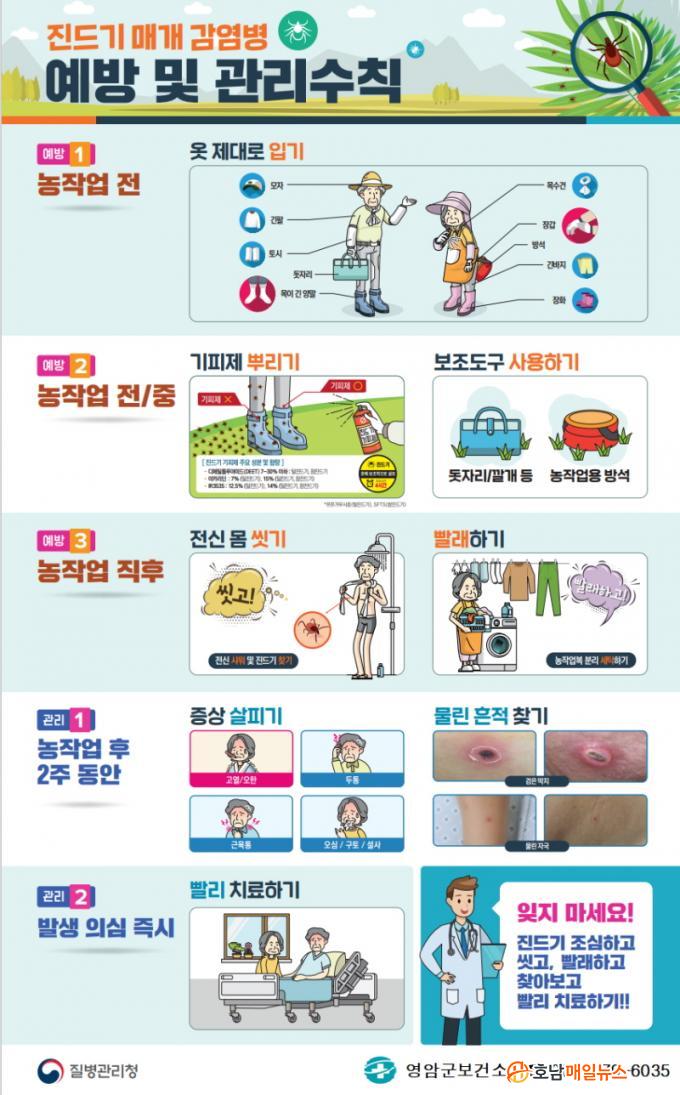 ÃÖ°í ¿¹¹æ¹ýÀº Áøµå±â¿¡ ¹°¸®Áö ¾Ê´Â °ÍÀ¸·Î, ³óÀÛ¾÷ µî ¾ß¿ÜȰµ¿ ½Ã ¡â±ä ¿Ê¡¤¹ÙÁö¿Í ¸ðÀÚ ÀԱ⠡â±âÇÇÁ¦ »Ñ¸®±â ¡âÇ®½£¡¤¹ç ÇÇÇϱ⠡âȰµ¿ ÈÄ ÅÐ°í¡¤¾Ä°í¡¤»¡·¡Çϱ⸦ »ýȰÈÇØ¾ß ÇÑ´Ù.
