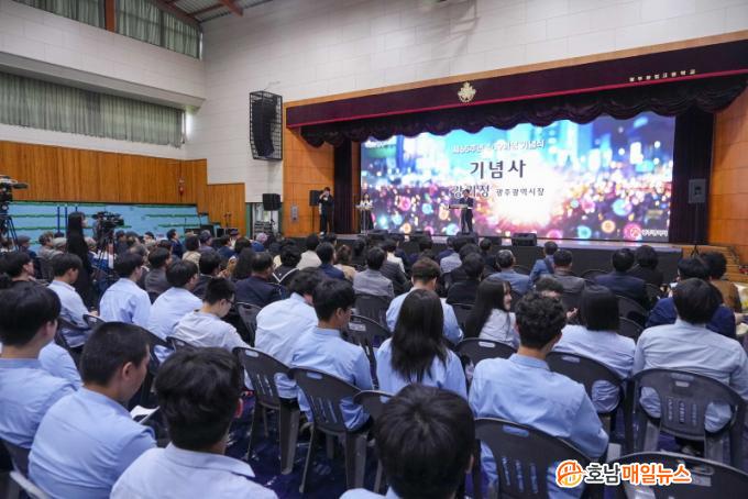 °±âÁ¤ ±¤ÁÖ±¤¿ª½ÃÀåÀº 19ÀÏ ±¤ÁÖÇü¸¶À̽ºÅÍ°í ±¤ÁÖ°ø¾÷°íµîÇб³¿¡¼ ¿¸° ¡®Á¦65ÁÖ³â 4¡¤19Çõ¸í ±â³ä½Ä¡¯¿¡¼ ´ëÇѹα¹ Çå¹ý Àü¹®¿¡ ¼ö·ÏµÈ 4¡¤19Çõ¸í Á¤½ÅÀ» ¾ð±ÞÇϰí, 5¡¤18Á¤½Å Çå¹ý Àü¹® ¼ö·ÏÀÇ Á߿伺À» ´Ù½Ã Çѹø °Á¶Çß´Ù.