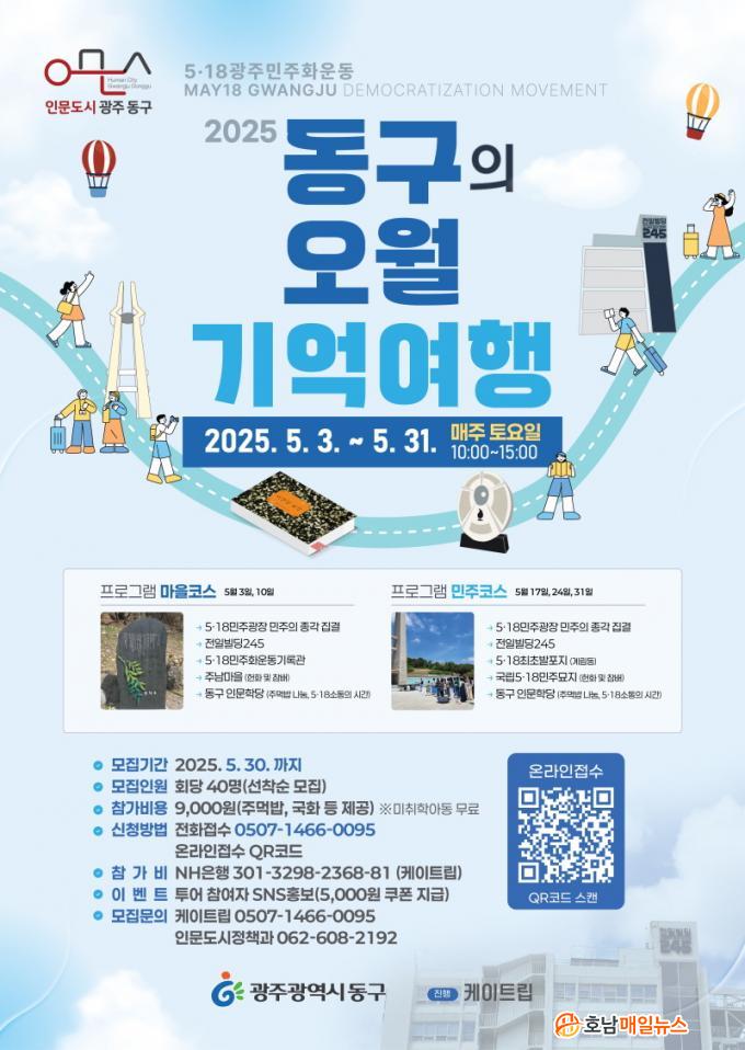 À̹ø Åõ¾î´Â °ü³» 5¡¤18 ÁÖ¿ä »çÀûÁö¸¦ ¡®¸¶À» ÄÚ½º¡¯, ¡®¹ÎÁÖ ÄÚ½º¡¯ 2°³ ÄÚ½º·Î ±¸¼ºÇØ ÇØ¼³»ç¿Í µÑ·¯º¸´Â ½Ã°£À¸·Î, 5¿ù ÇÑ ´Þ µ¿¾È ¸ÅÁÖ Åä¿äÀÏ ¿ÀÀü 10½ÃºÎÅÍ ¿ÀÈÄ 3½Ã±îÁö ÁøÇàÇÑ´Ù. 1ȸ´ç 40¸í ÃÑ 200¸íÀ» ¸ðÁýÇÒ °èȹÀÌ´Ù.