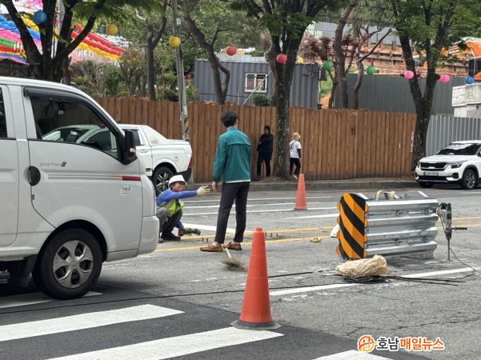 »ç°í Áö¿ªÀº »ó¹«¾Æ¿ï·¿ ºÎ±ÙÀ¸·Î Çæ°Å¿öÁø ¿Á¿Ü °£ÆÇÀÌ ³«ÇÏÇÏ¿© ÁÖº¯ ¾ÈÀü Á¶Ä¡°¡ ÀÌ·ïÁ³´Ù. ´ÙÇàÈ÷ ÀθíÇÇÇØ´Â ¹ß»ýÇÏÁö ¾Ê¾ÒÀ¸¸ç, Àç»ê ÇÇÇØ ¹× »ç°í ¿øÀÎÀº ÇöÀç ÆÄ¾Ç ÁßÀÎ °ÍÀ¸·Î ¾Ë·ÁÁ³´Ù.