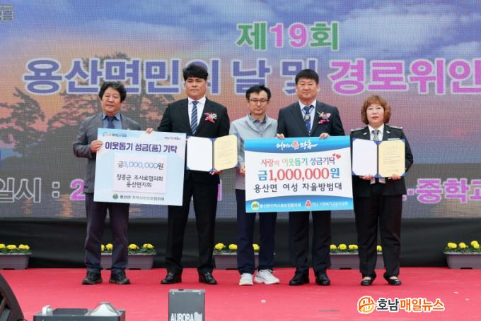 À̳¯ ÀåÈﱺ Á¶»ç·áÇùÀÇȸ ¿ë»ê¸é Áöȸ(ÁöȸÀå ¹é±ÔÇå)¿Í ¿ë»ê¸é ¿©¼ºÀÚÀ²¹æ¹ü´ë(´ëÀå ±èÀº¹Ì)°¡ ¿ë»ê¸é Áö¿ª»çȸº¸ÀåÇùÀÇü¿¡ °¢°¢ 300¸¸¿ø°ú 100¸¸¿øÀ» ±âŹÇß´Ù.