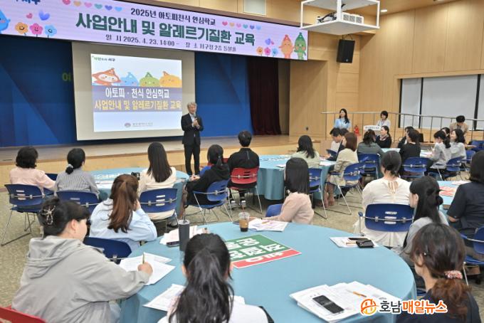 ¼±¸´Â 23ÀÏ ¼±¸Ã» µéºÒȦ¿¡¼ ¾È½ÉÇб³·Î ÁöÁ¤µÈ ±â°üÀÇ º¸°Ç ․ º¸À°±³»ç 50¿© ¸íÀ» ´ë»óÀ¸·Î »ç¾÷ ¾È³»¿Í °¿¬ ½Ã°£À» °®°í »ç¾÷ ÃëÁö¿Í ¿î¿µ ¹æÇâÀ» °øÀ¯Çß´Ù. À̳¯ ±³À°¿¡´Â ¾çÇüä Àü³²´ëº´¿ø ±³¼ö°¡ ¡®¾Ë·¹¸£±âºñ¿°ÀÇ ÀÌÇØ¿Í °ü¸®¡¯¸¦ ÁÖÁ¦·Î °¿¬À» ÆîÃÄ Á¶±â Ä¡·á¿Í ¸é¿ª °ü¸®ÀÇ Á߿伺À» ¾Ë·È´Ù.