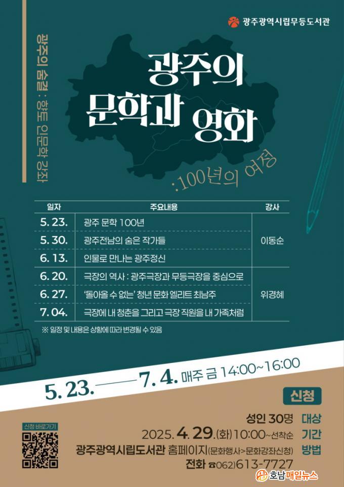 À§°æÇý Àü³²´ëÇб³ È£³²Çבּ¸¿ø Çмú¿¬±¸±³¼ö°¡ ÁøÇàÇÏ´Â 4~6°Àº ±¤ÁÖ ¿µÈ¹®ÈÀÇ ¿ª»ç¿Í Àι°À» ¼Ò°³ÇÑ´Ù. ¡ã4°(6¿ù20ÀÏ) ¡®±ØÀåÀÇ ¿ª»ç¡¯ ¡ã5°(6¿ù27ÀÏ) ¡®µ¹¾Æ¿Ã ¼ö ¾ø´Â û³â ¹®È ¿¤¸®Æ® ÃÖ³²ÁÖ¡¯ ¡ã6°(7¿ù4ÀÏ) ¡®±ØÀå¿¡ ûÃáÀ» ¹ÙÄ£ Àι°°ú °ü°´¡¯À¸·Î ±¸¼ºµÆ´Ù.