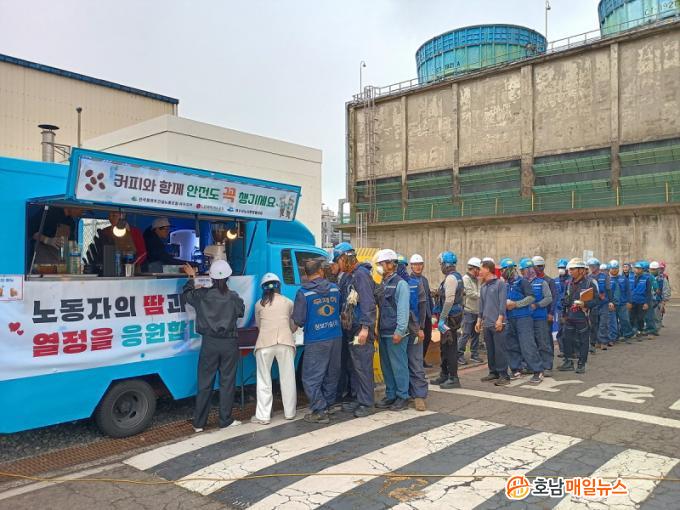 ƯÈ÷, ÇöÀå¿¡¼ ±Ù¹«ÇÏ´Â ³ëµ¿ÀÚµéÀÌ Áú¼Á¤¿¬ÇÑ ¸ð½ÀÀ¸·Î Ä·ÆäÀο¡ Âü¿©ÇØ ´«±æÀ» ²ø¾ú´Ù.