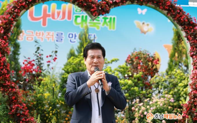 À̳¯ ¿ÀÈÄ 7½Ã¿¡´Â ³ªºñ´ëÃàÁ¦ °³¸·½ÄÀÌ ¿·Á Áֹΰú °ü±¤°´ÀÌ ÇÔ²²ÇÏ´Â °¡¿îµ¥ ÃàÁ¦ÀÇ Âù¶õÇÑ ½ÃÀÛÀ» ¼±Æ÷ÇÑ´Ù. °³¸· ÃàÇÏ °ø¿¬¿¡´Â °¡¼ö Á¶¼º¸ð¿Í ¼ÒÂùÈÖ°¡ È·ÁÇÑ °ø¿¬À» ¼±º¸À̸ç ÃàÁ¦ÀÇ ¿±â¸¦ ´õÇÒ ¿¹Á¤ÀÌ´Ù.
