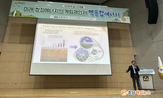 ¿À¿µ±¹ ¿øÀåÀº Ư°¿¡¼ ¡°ÇÙÀ¶ÇÕ¿¡³ÊÁö´Â žçÀÌ ½º½º·Î ºûÀ» ³»´Â ¿ø¸®¸¦ ±â¹ÝÀ¸·Î ÇÑ Åº¼Ò¹èÃâ ¾ø´Â ûÁ¤¿¡³ÊÁö·Î, ¿¬·á°¡ »ç½Ç»ó ¹«ÇÑÇÏ°í ¾ÈÀü¼º°ú Áö¼Ó °¡´É¼ºÀ» µ¿½Ã¿¡ °®Ãá ¹Ì·¡ ¿¡³ÊÁö ±â¼ú¡±À̶ó°í ¼³¸íÇß´Ù. ÀÌ¾î ¡°´ëÇѹα¹Àº ±¹Á¦ÇÙÀ¶ÇÕ½ÇÇè·Î(ITER) ±¹Á¦°øµ¿¿¬±¸¿Í Çѱ¹ ÇÙÀ¶ÇÕÀåÄ¡(K-STAR) ½ÇÇèÀåÄ¡ ¿î¿µÀ» ÅëÇØ ¼¼°èÀû ÇÙÀ¶ÇÕ ±â¼ú·ÂÀ» º¸À¯Çϰí ÀÖ´Ù¡±°í °Á¶Çß´Ù.