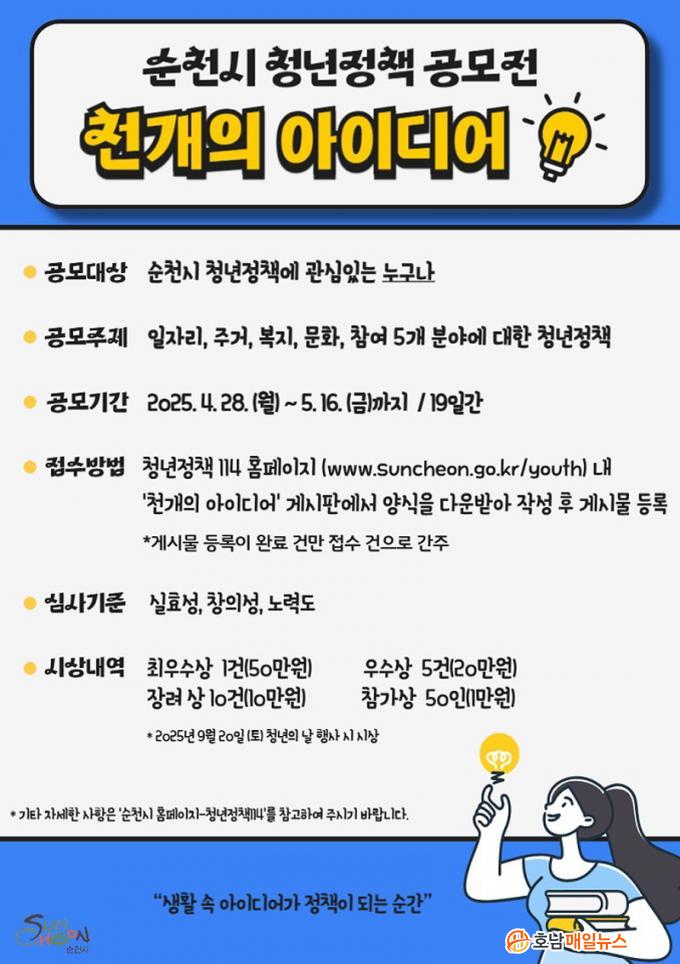 À̹ø °ø¸ð´Â ¼øÃµ½Ã û³âÁ¤Ã¥¿¡ °ü½É ÀÖ´Â ´©±¸³ª Âü¿©ÇÒ ¼ö ÀÖÀ¸¸ç, ÀÏÀÚ¸®, ÁÖ°Å, º¹Áö, ¹®È, Âü¿© µî 5°³ ºÐ¾ß¸¦ Áß½ÉÀ¸·Î û³âÀÇ »îÀÇ Áú Çâ»ó¿¡ ±â¿©ÇÒ ¼ö ÀÖ´Â ½ÇÈ¿¼º ÀÖ´Â ¾ÆÀ̵ð¾î¸¦ ¸ðÁýÇÑ´Ù.