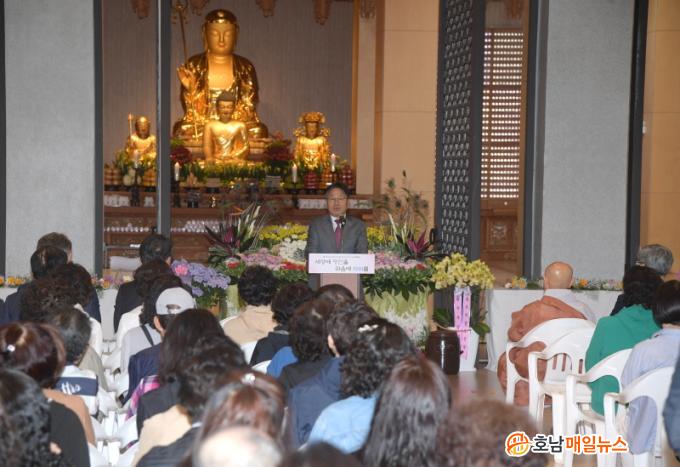 ° ½ÃÀåÀº ³¡À¸·Î ¡°ºÎó´ÔÀÇ ÁöÇý¿Í ÀÚºñ·Î ¿Â ¼¼»óÀÌ ÆòÈ °¡µæÇϱ⸦ ±âµµÇÑ´Ù¡±¸ç ¡°Å« ±ú´ÞÀ½À¸·Î Áß»ýÀÇ ¾Õ±æÀ» ¹àÈ÷½Å ºÎó´ÔÀÇ ³ôÀº °ø´öÀ» ±â¸®¸ç ºÎó´Ô ¿À½Å ³¯ ºÀÃàµå¸°´Ù¡±°í ¸»Çß´Ù.