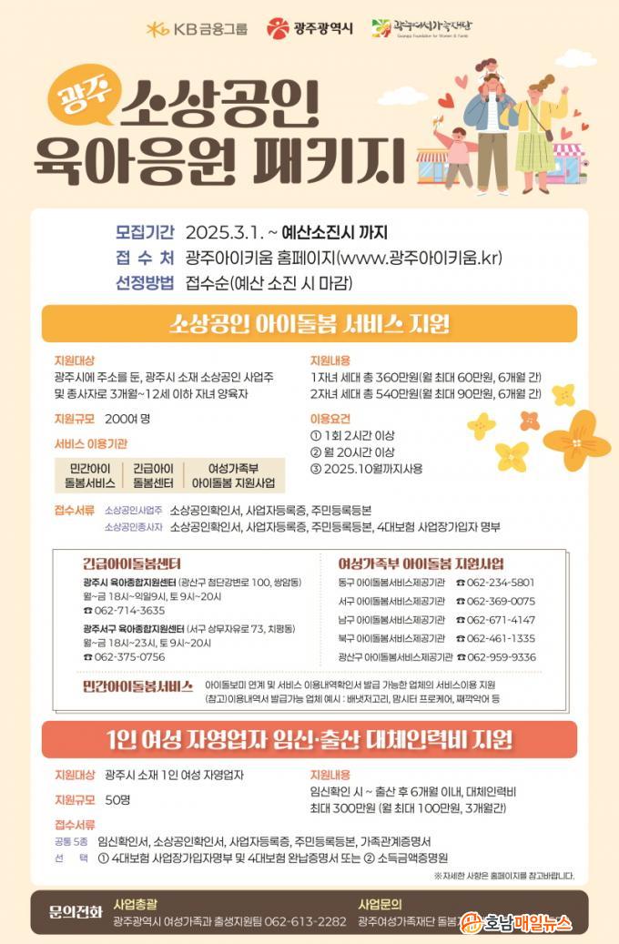 ±¤ÁÖ±¤¿ª½Ã(½ÃÀå °±âÁ¤)´Â KB±ÝÀ¶±×·ìÀÇ ÈÄ¿ø(»ç¾÷ºñ 10¾ï¿ø)À¸·Î 3°³¿ù~12¼¼ Àڳฦ µÐ Áö¿ª ¼Ò»ó°øÀÎ(»ç¾÷ÁÖ ¹× Á¾»çÀÚ)¿¡°Ô ¾ÆÀ̵¹º½¼ºñ½º ÀÌ¿ë·á¸¦, 1ÀÎ ¿©¼º ÀÚ¿µ¾÷ÀÚ¿¡°Ô´Â ÀÓ½Å‧Ãâ»ê ´ëüÀηºñ¸¦ Áö¿øÇÏ´Â ¡®±¤ÁÖ ¼Ò»ó°øÀÎ À°¾ÆÀÀ¿øÆÐŰÁö Áö¿ø»ç¾÷¡¯À» Áö³ÇØ 12¿ùºÎÅÍ ½ÃÇàÇϰí ÀÖ´Ù.