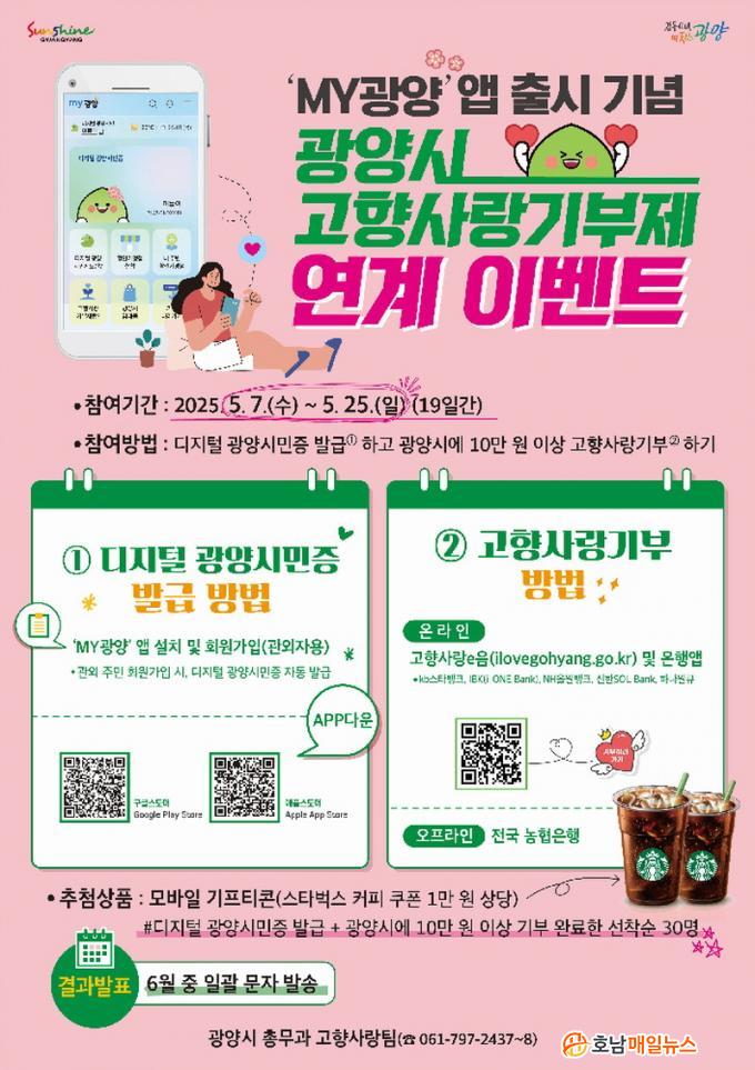 À̹ø À̺¥Æ®´Â ¡®MY±¤¾ç¡¯ ¾ÛÀ» ÅëÇØ µðÁöÅÐ ±¤¾ç½Ã¹ÎÁõÀ» ¹ß±Þ¹Þ°í, ±¤¾ç½Ã¿¡ 10¸¸ ¿ø ÀÌ»ó °íÇâ»ç¶û±âºÎ¸¦ Çϸé ÀÚµ¿ ÀÀ¸ðµÈ´Ù.