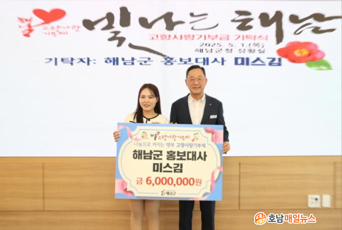 TVÁ¶¼± ¹Ì½ºÆ®·Ô3 Ã⿬ÀڷΠȰ¾àÇÑ ÇØ³² Ȳ»ê¸é Ãâ½ÅÀÇ ¹Ì½º±èÀº °íÇâ»ç¶û±âºÎ±Ý 600¸¸¿øÀ» ±âŹÇÏ¸ç °íÇâ»ç¶ûÀÇ ¸¶À½À» ÀüÇß´Ù. ÇØ³²±º È«º¸´ë»ç·Î Ȱ¹ßÇÑ È°µ¿À» ÆîÄ¡°í ÀÖ´Â ¹Ì½º±èÀº ÇØ³²±º¹ÎÀÇ ³¯À» ¸Â¾Æ 4¿ù 28ÀÏ °³ÃÖµÈ Àü±¹³ë·¡ÀÚ¶û ÃÊ´ë°¡¼ö·Î Ã⿬, ÇÑÃþ ¼ºÀåÇÑ ¸ð½ÀÀ» ¼±º¸À̱⵵ Çß´Ù.
