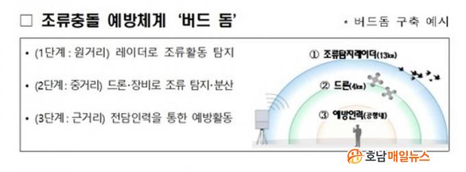 °øÇ× ÁÖº¯ ȯ°æ °ü¸®µµ ÇÑÃþ ü°èȵȴÙ. ±âÁ¸¿¡´Â °øÇ× ¹Ý°æ 3~8§° À̳»¸¦ Á¶·ù À¯Àνü³ °ü¸®±¸¿ªÀ¸·Î ¿î¿µÇßÀ¸³ª, ¾ÕÀ¸·Î´Â ±× ¹üÀ§¸¦ 13§°±îÁö È®´ëÇÑ´Ù. ¶ÇÇÑ Á¶·ù °¨½Ã¿ë CCTV¿Í µ¥ÀÌÅÍ ºÐ¼® ±â´ÉÀ» °®Ãá ÅëÇÕ°¨½Ã¼¾ÅͰ¡ ³»³â¿¡ ½Ã¹ü ¼³Ä¡µÅ, º¸´Ù Á¤¹ÐÇÏ°í ½Å¼ÓÇÑ ½Ç½Ã°£ ¸ð´ÏÅ͸µ°ú ´ëÀÀÀÌ °¡´ÉÇØÁú Àü¸ÁÀÌ´Ù.