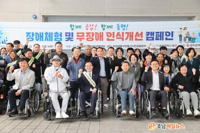 [È£³²¸ÅÀÏ´º½º = ±è¿¬Èñ ±âÀÚ] ±¤ÁÖ ºÏ±¸´Â Áö³ 9ÀÏ ¹«Àå¾ÖºÏ±¸¸¸µé±â ½Ã¹Î¿îµ¿º»ºÎ¿Í ÇÕµ¿À¸·Î Àå¾ÖüÇè ¹× ¹«Àå¿¡ Àνݳ¼± Ä·ÆäÀÎÀ» ½Ç½ÃÇß´Ù. À̳¯ Çà»ç´Â ºñ¿£³¯·¹ Àü½Ã°ü ¾ß¿Ü ÀÏ¿ø¿¡¼ ¹®ÀÎ ºÏ±¸Ã»ÀåÀ» ºñ·ÔÇÑ 60¿© ¸íÀÇ Âü¿©ÀÚµéÀÌ Âü¼®ÇÑ °¡¿îµ¥ ÁøÇàµÆ´Ù.