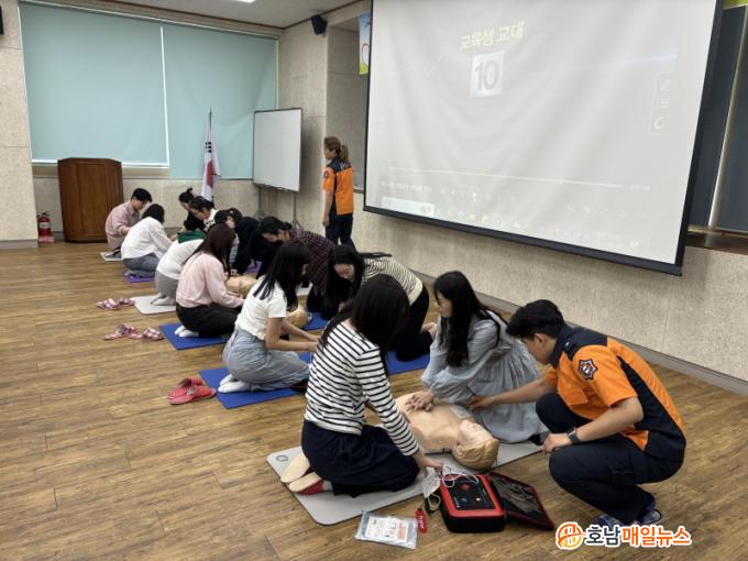 ±³À°Àº ¡âÀÀ±Þóġ ÀÌ·Ð ¡â»ý¾ÖÁֱ⺰ ±âµµÆó¼â óġ¹ý ¡â°¡Á¤ ¹× Á÷Àå¿¡¼ ¹ß»ý °¡´ÉÇÑ ÀÀ±ÞȯÀÚ »ç·Êº° ´ëó¹ý ¡â½ÉÆó¼Ò»ý¼ú ¹× ÀÚµ¿½ÉÀåÃæ°Ý±â(AED) »ç¿ë ¹æ¹ý µî ´Ù¾çÇÑ »óȲ¿¡ ´ëÇÑ ÀÀ±Þóġ¹ýÀ» Áß½ÉÀ¸·Î À̷аú ½Ç½ÀÀ» º´ÇàÇÏ¿© ÁøÇàµÇ¾ú´Ù. ƯÈ÷, ½ÇÁ¦ ÀÀ±Þ»óȲÀ» »ç·Ê·Î Âü¿© Á÷¿øµéÀÇ ³ôÀº °ü½É ¼Ó¿¡ ÁøÇàµÇ¾ú´Ù.