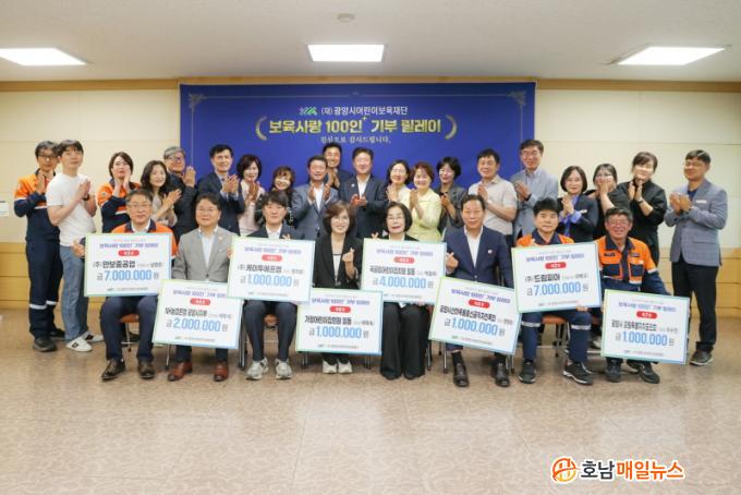 À̱¤¿ë (Àç)±¤¾ç½Ã¾î¸°À̺¸À°Àç´Ü ÀÌ»çÀåÀº ¡°±âºÎ ¸±·¹ÀÌ¿¡ ÇÔ²²ÇØÁֽЏðµç ±âºÎÀÚ²² Áø½ÉÀ¸·Î °¨»çµå¸°´Ù¡±¸ç ¡°À̹ø ¸±·¹ÀÌ´Â ÀÚ¹ßÀûÀ¸·Î Âü¿©Çϰí, ¸ðµÎ°¡ ÇÔ²² ³ª´®ÀÇ °¡Ä¡¸¦ ½ÇõÇϰí ÀÖ´Ù´Â Á¡¿¡¼ ´õ¿í ¶æ±í´Ù. Àü´Þ¹ÞÀº ¼ÒÁßÇÑ ±âʱÝÀº ±¤¾ç½Ã ¾ÆÀ̵éÀÇ º¸À°È¯°æ °³¼±°ú º¹Áö Çâ»óÀ» À§ÇØ »ç¿ëµÉ ¿¹Á¤À̸ç, ±âºÎÀÚµéÀÇ µ¿ÂüÀÌ ¾ÆÀ̵éÀÇ ´õ ³ªÀº ³»ÀÏÀ» ¸¸µé¾î°¡´Â µ¥ Å« ÈûÀÌ µÉ °Í¡±À̶ó°í ÀüÇß´Ù.