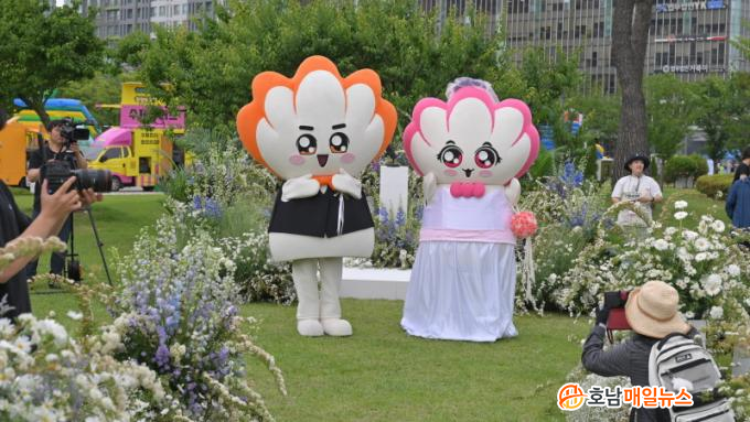 ƯÈ÷, ±¤ÁÖ±¤¿ª½Ã ´ëÇ¥ ij¸¯ÅÍÀÎ ¡®ºûµ¹ÀÌ¡¯¿Í ¿©ÀÚÄ£±¸ÀÎ ¡®ºû³ª¿µ¡¯ÀÇ °áÈ¥½ÄÀ» Å׸¶·Î ±¸¼ºµÈ ÆÛ·¹À̵尡 ½Ã¹ÎµéÀÇ Å« È£ÀÀÀ» ¾ò¾ú´Ù. ij¸¯Å͵éÀº Çϰ´À¸·Î Âü¼®ÇØ °áÈ¥ ÃàÇÏ ÆÛÆ÷¸Õ½º¸¦ ÆîÃÆÀ¸¸ç, ÀÌ»öÀûÀÎ Àå¸é¿¡ ÇöÀåÀ»Ã£Àº ½Ã¹Î°ú ¾î¸°À̵éÀÇ ¶ß°Å¿î ¹ÝÀÀÀÌ À̾îÁ³´Ù.